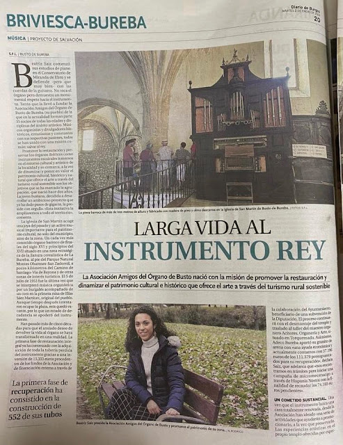 DIARIO DE NOTICIAS DE BURGOS DEDICA DOS PÁGINAS COMPLETAS PARA LA DIFUSIÓN DE LA RESTAURACIÓN DEL ÓRGANO BARROCO DE BUSTO DE BUREBA